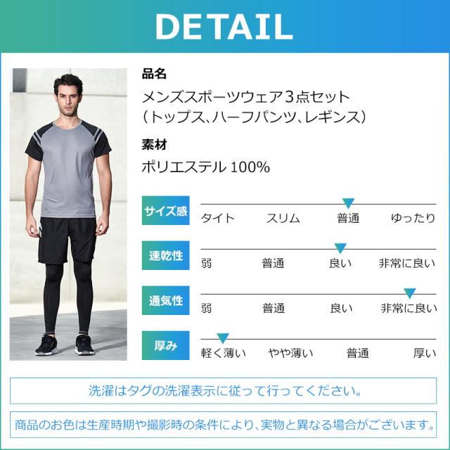 トレーニングウェア 上下 メンズ 3点 ランニングウェア フィットネスウェア スポーツウェア 吸汗速乾 UVカット UPF50+ ストレッチ Tシャツ ハーフパンツ レギンス M L XL 2XL 3XL 大きいサイズ ジョギング マラソン ジム