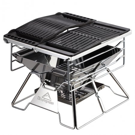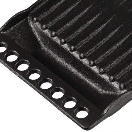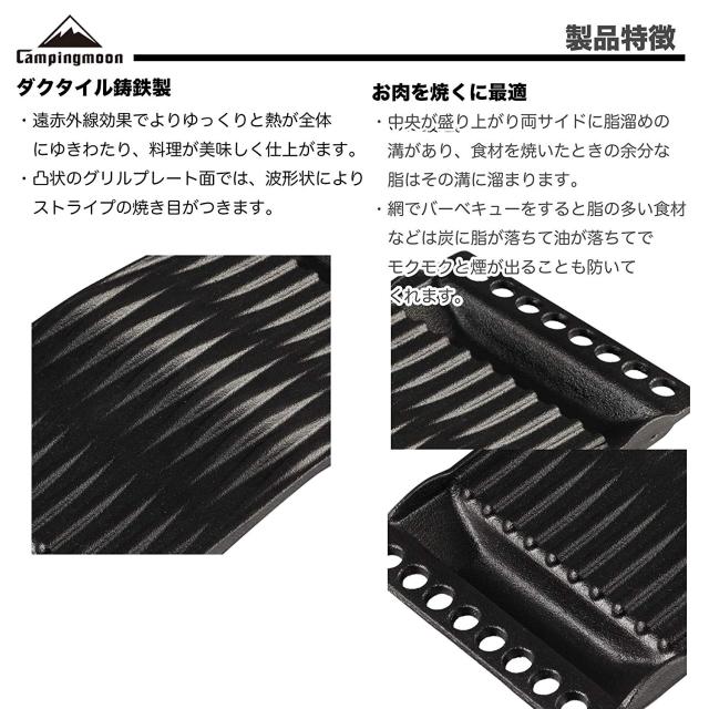 キャンピングムーン社のグリルプレートになります。プレートの裏面には肉等を焼くのに便利な3mm厚のリブ加工を施しており、鉄板自体は4.5mmの丈夫さで出来ていますので、キャンプ場での料理の幅が広がる一品です。