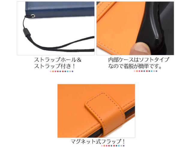 カラフルな8色展開のカラーレザー手帳型ケース。衝撃やキズなどから守ります。また、内部はソフトケースなので着脱が簡単です。