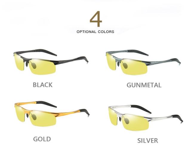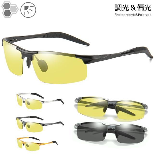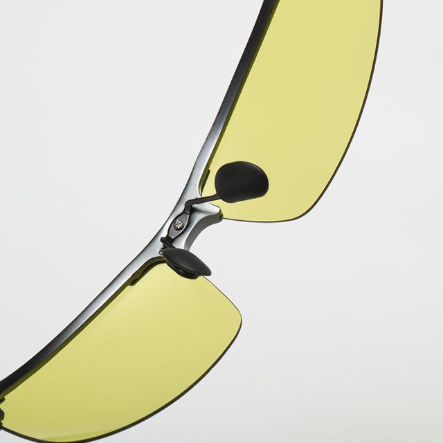 | ブラック(調光偏光イエローグレー) ガンメタル(調光偏光イエローグレー) ゴールド(調光偏光イエローグレー) シルバー(調光偏光イエローグレー) | フレーム:アルミニウム+マグネシウム合金 レンズ:プラスチック(TAC)調光偏光 ●仕様 バネ丁番 フレキシブルノーズパッド フレキシブルテンプル |