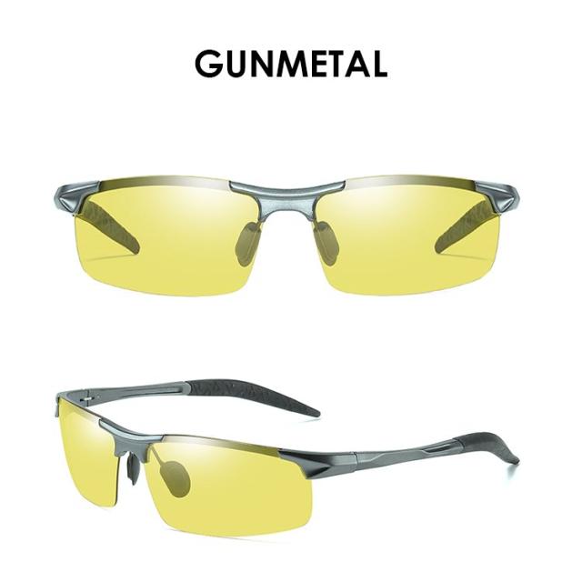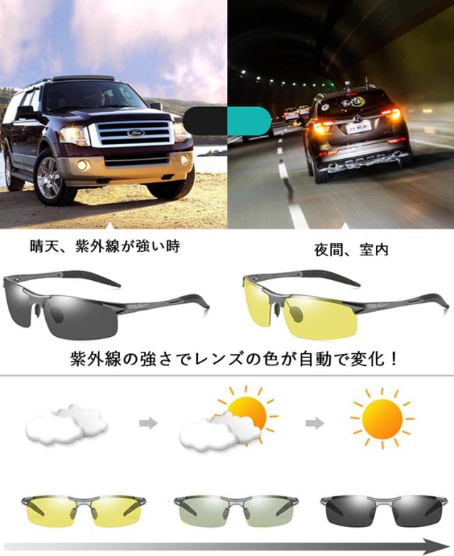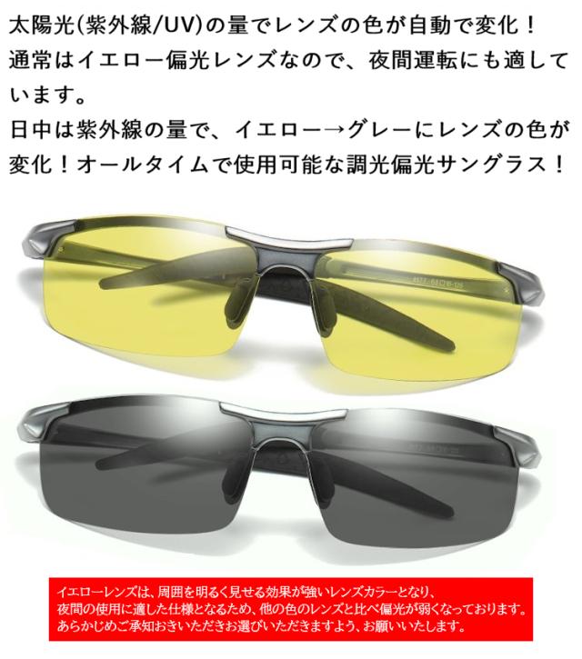 調光サングラス 偏光 調光 夜間 運転 サングラス メンズ UVカット ドライブ 車 男性 夜釣り イエローレンズ 黄色 偏光サングラス 調整可能 動く鼻パッド バネ蝶番 アルミニウム+マグネシウム合金フレーム ケース付き ao053c レンズの色が変わる
