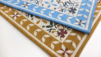 ゴブランの技法で織り出した繊細なデザイン。 モール状のシェニール糸を使用したラグには独特の光沢感があり 角度によって違う表情を見せてくれます。 | |||||||||||