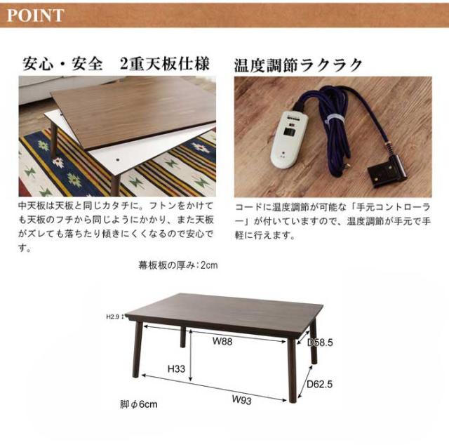 シンプルスタイリッシュ フラットヒーターコタツ【KT-303】サイズ:W105×D75×H38cm コタツ センターテーブル 炬燵 フラットヒーター シンプル 大型【メーカー直送】