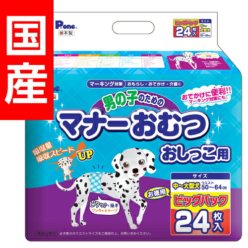 犬 おむつ 男の子のためのマナーおむつ おしっこ用 ビッグパック 中〜大型犬用 24枚