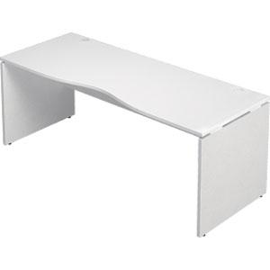 幕板に配線トレー1個を標準装備しています。幅1800mmのデスクは、オプションのL型連結天板をデスクの両側に取り付けることができます。