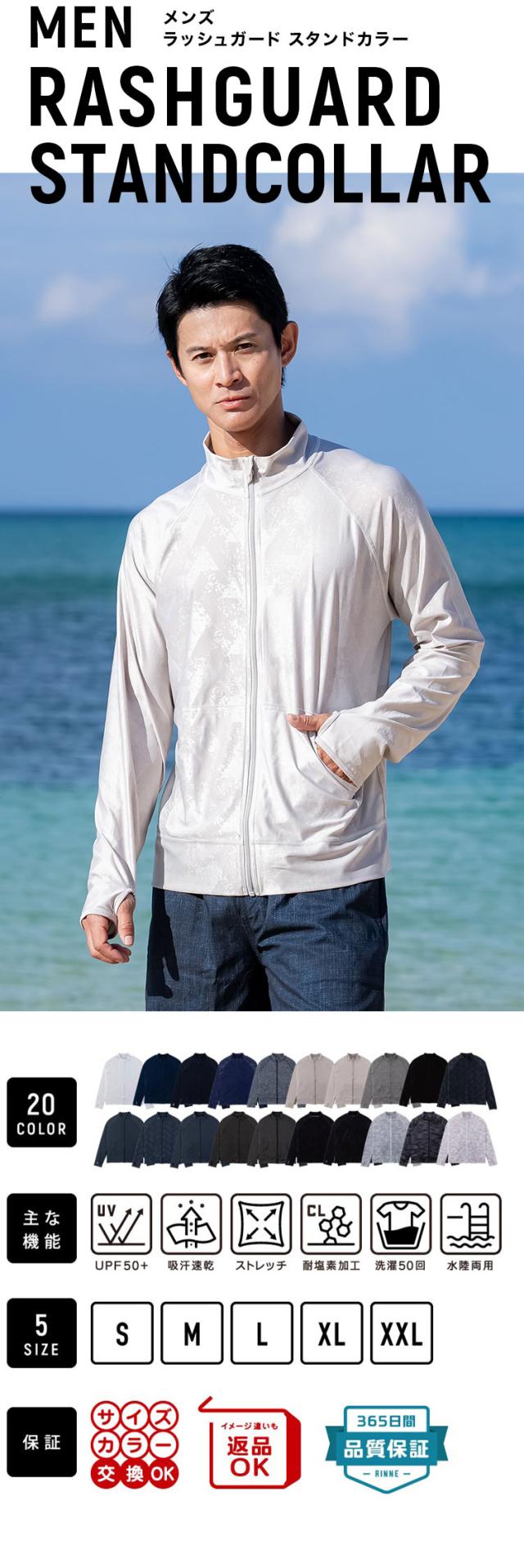 ラッシュガード メンズ スタンドカラー 立ち襟 水着用 フードなし 長袖 体型カバー UV 日焼け対策