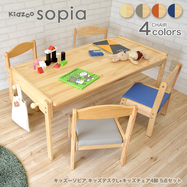 Kidzoo(キッズーシリーズ)ソピアキッズデスク1200サイズ+キッズチェア4脚 計5点セット SKLT-1200+KNN-C×4