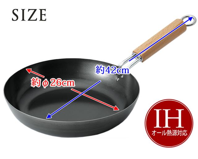 【鉄のフライパン ガス火 IH兼用 極厚底鉄板 26cmの商品詳細】