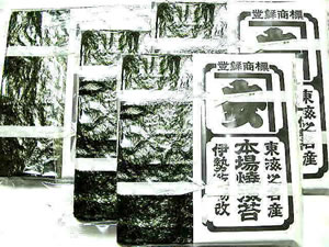 3セット以上を買い上げのお客様に さらに商品を1袋プレゼント! ※プレゼントはワケ有り寿司海苔24枚 ※注意事項:ご注文の際に備考欄にキーワード 『伊勢乾物の共同購入価格』とご記入下さい。 記入漏れの場合にはプレゼントは無効となります。 |