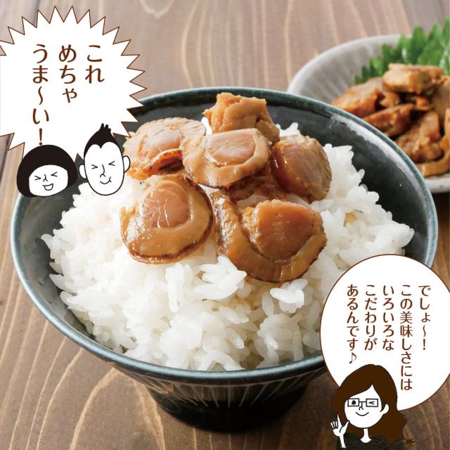 - 私はホタテの佃煮が大好きなので、ちょくちょく買わせて頂いています。 とても美味しいです。 有難うございました。