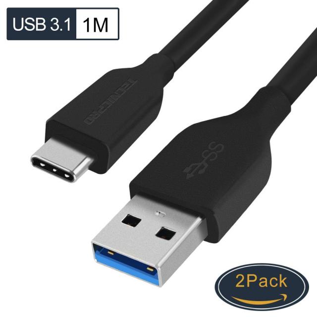 TECNICPRO USB Type C ケーブル【1M*2本セット/正規認証品】USB3.1 タイプ C ケーブル10Gbps(Max)高速データ転送 3A急速充電 Quick Charge3.0対応 タイプ-C ケーブル