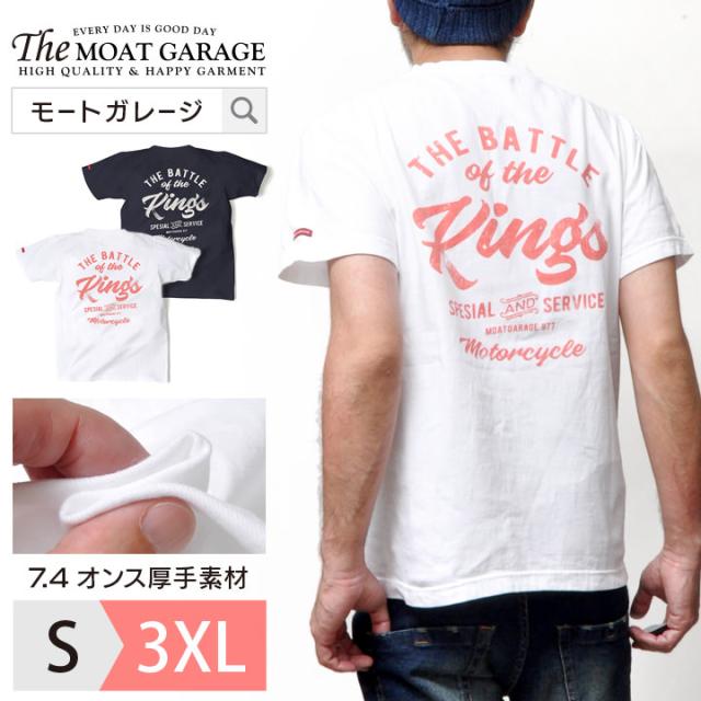 頂上決戦、勝負を制したものが王様になれる。モーターサイクルのバトルイベントをイメージしたデザインTシャツ。7.4オンスの厚手ヘビーウエイトのボディーを使用し、洗い加工でより目の詰まったタフなボディーは、へこたれづらく長く着てもらえる男のTシャツ。 ブランド:Moat Garage / モートガレージ