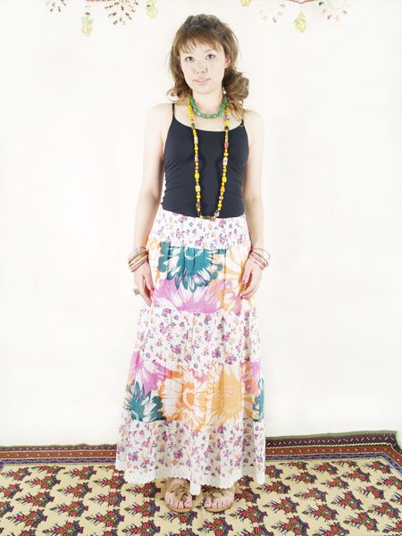 花柄 ロングスカート 春夏 マキシ丈 2WAYスカート ティアードスカート ベアトップ ワンピ エスニック