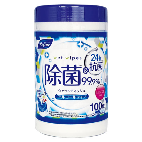 ライフ堂 リファイン アルコール除菌 ウェットボトル 100枚入 ウェットティッシュ 除菌 抗菌 アルコールタイプ ボトル入
