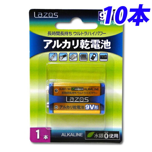 Lazos 9V形 アルカリ乾電池 10本 LA-9VX1