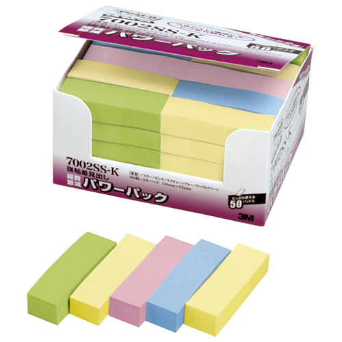 3M ふせん ポストイット パワーパック 強粘着 50×15mm パステルカラー混色 90枚×50冊入 7002SS-K スリーエム post-it