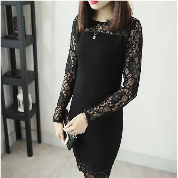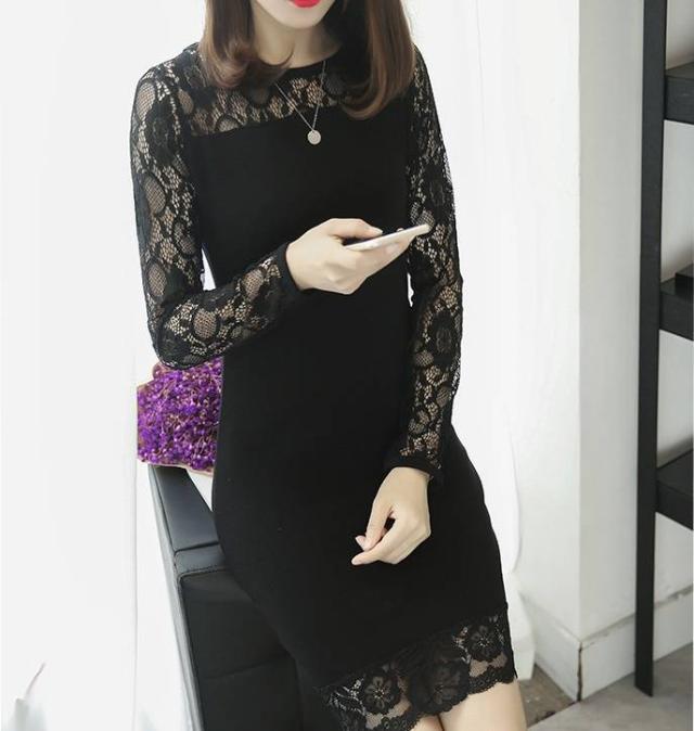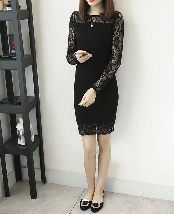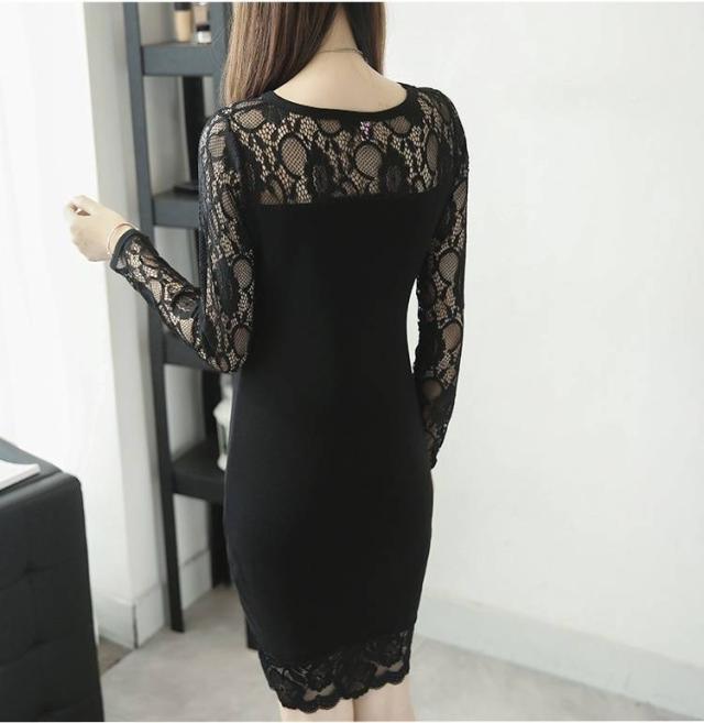 ワンピース ドレス 花柄レース ラウンドネック 長袖 透け感 細身 フィット スリム タイト ミニ丈 おしゃれ 大人 上品 フェミニン スタイリッシュ 春 韓国ファッション レディース パーティー 結婚式 二次会 お呼ばれ ワンピース フォーマル 婚活パーティー 披露宴