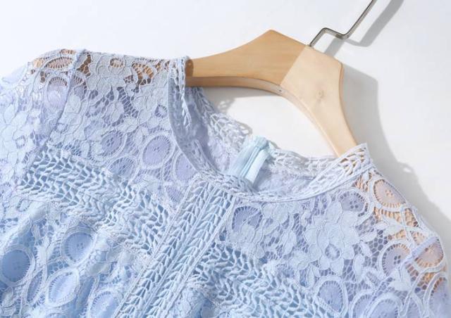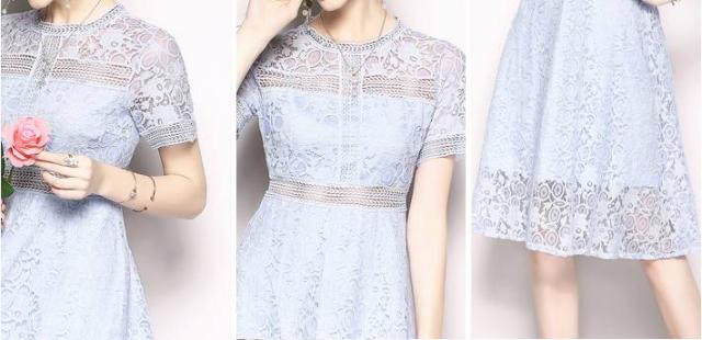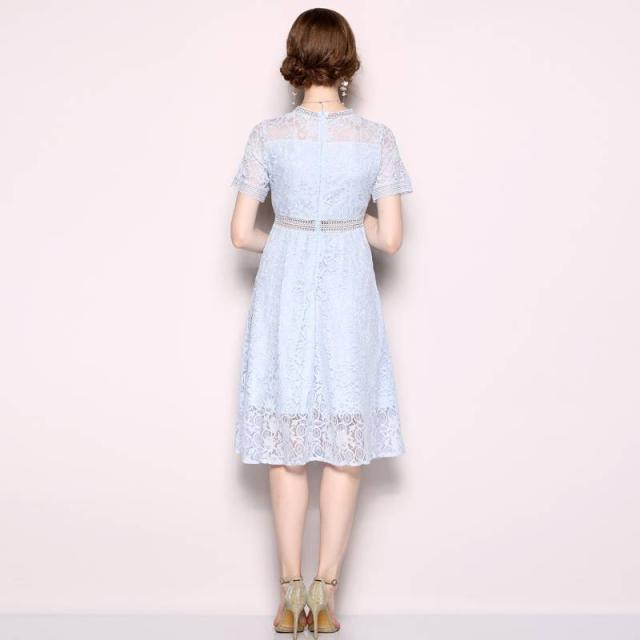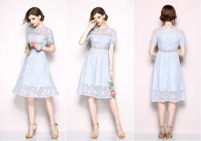 ワンピース パーティードレス 総レース 半袖 ウエストマーク 透け感 春夏 膝丈 お呼ばれ 女子会 華やか 上品 婚活パーティー