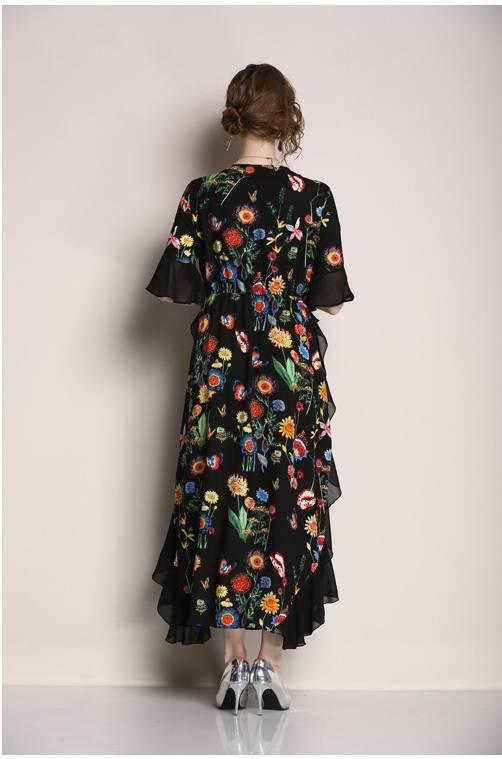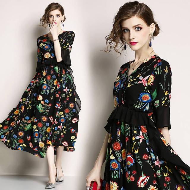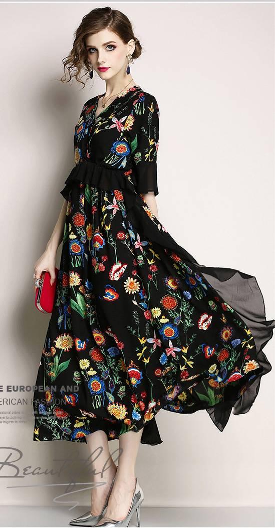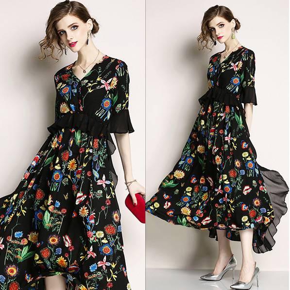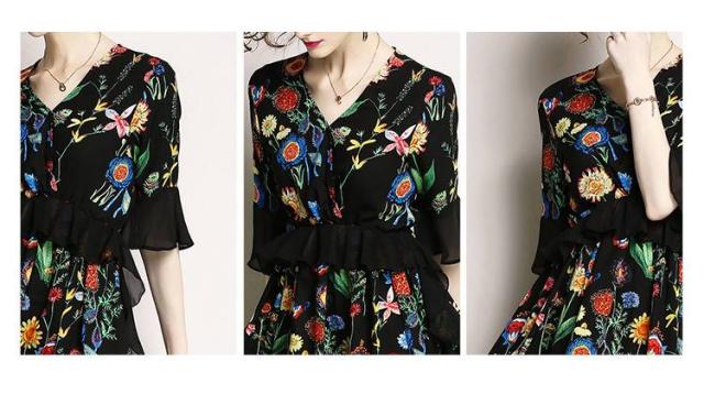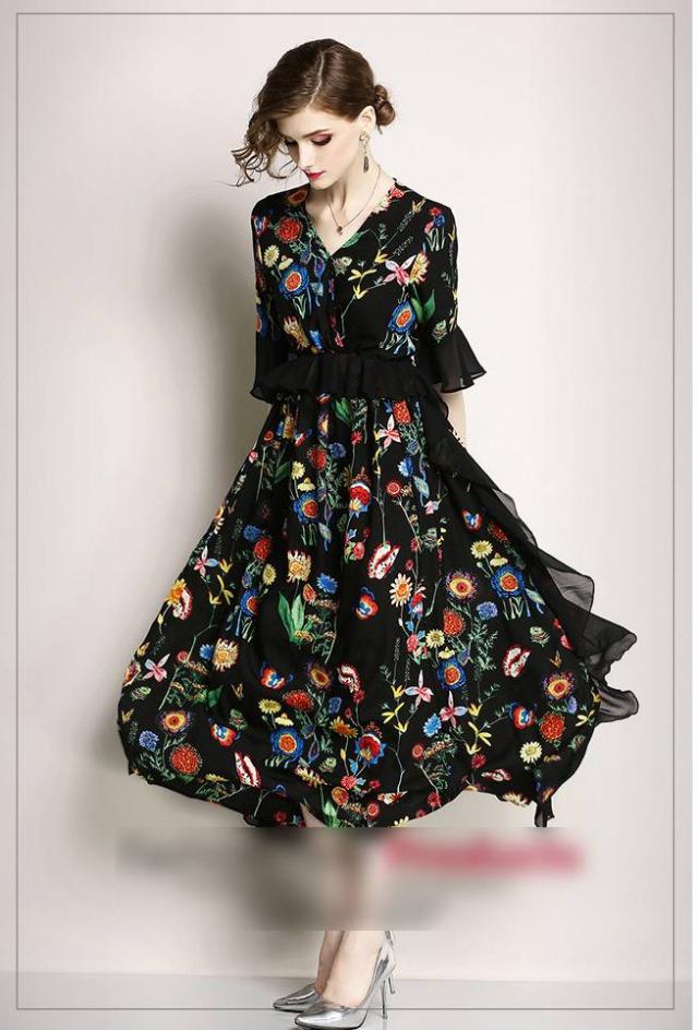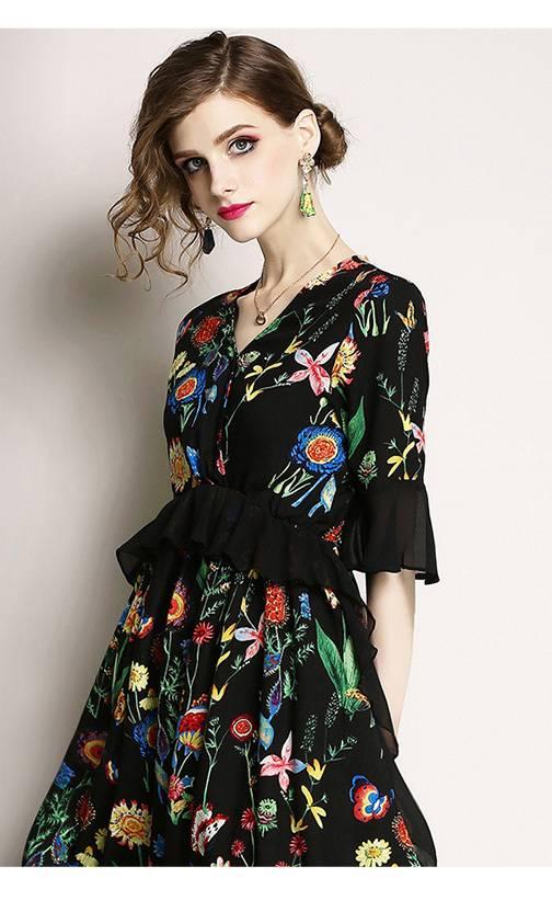 ドレス 花柄 Vネック ウエストマーク 着痩せ エレガント フェミニン パーティー 結婚式 二次会 お呼ばれ ワンピース フォーマル 新作 婚活パーティー 披露宴 ウェディング 女子会 謝恩会 卒業式 入学式 演奏会