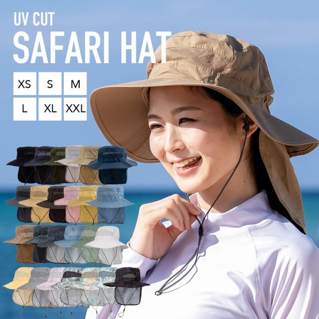 サファリハット メンズ レディース キッズ 撥水 マリンハット ビーチハット UVカット サンシェード ストラップ付き