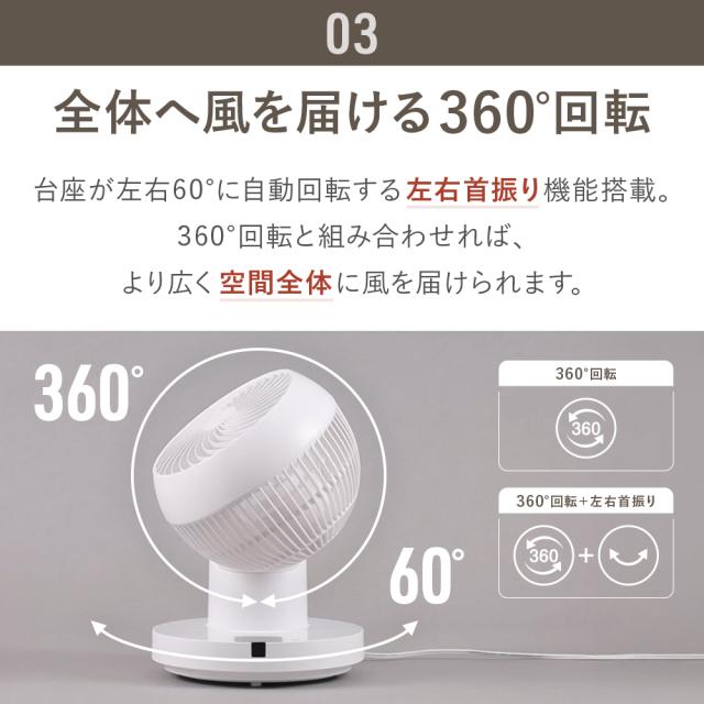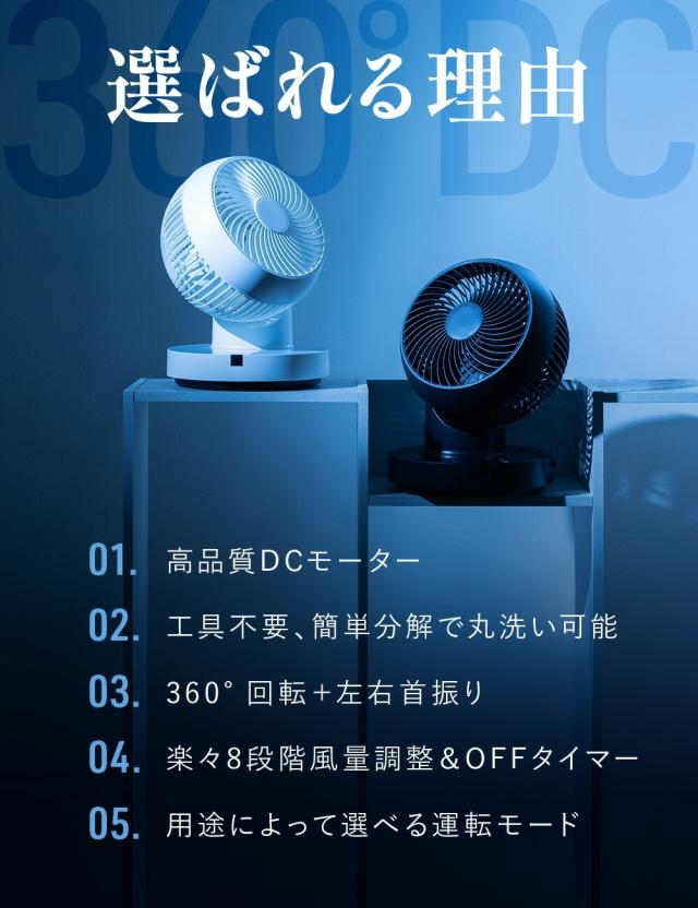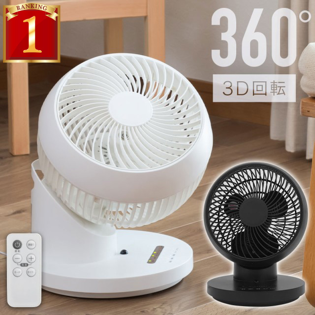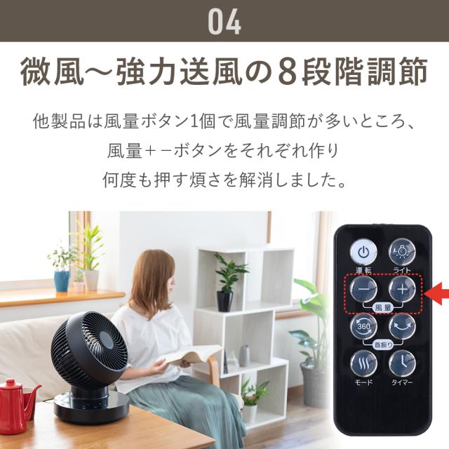 サーキュレーター【 360度 首振り 】扇風機 回転+左右首振 dcモーター 換気 部屋干し リモコン付き 風量8段階 dcサーキュレーター dc ホワイト ブラック グレー 1年保証
