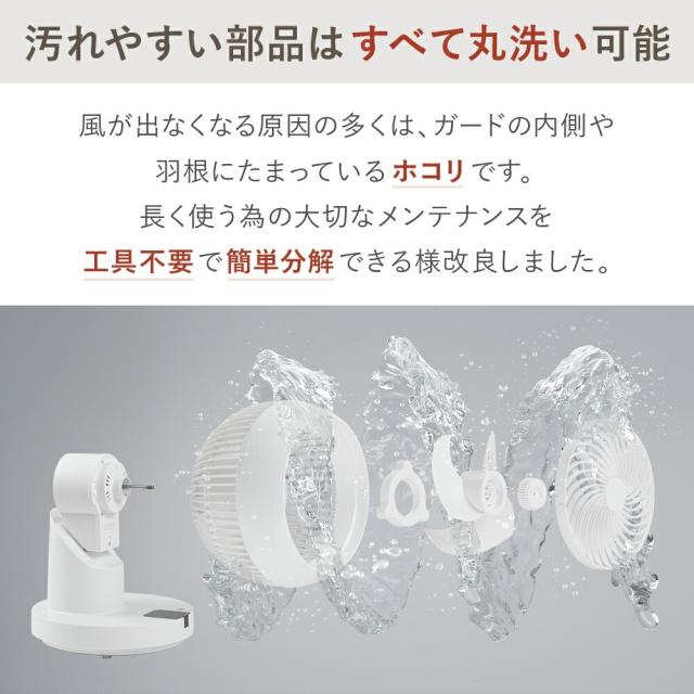 本体から前ガード・羽根・後ろガードが取り外しでき、水洗い可能です。