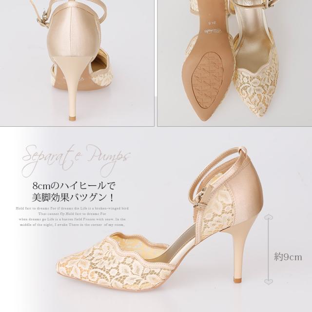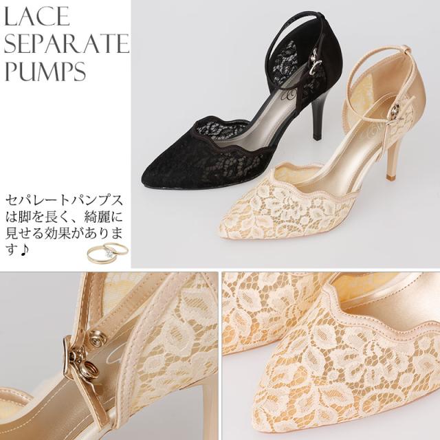 レースセパレートパンプス【s062】20代・30代・40代・50代パーティーシューズ・痛くないパンプス・ローヒール・太ヒール・ピンヒール・ヒール・レース・デザインヒール・サテン・ストラップ・フォーマル・大きいサイズなど・即日発送・送料無料・結婚式・婚活・披露宴・顔合わせ・二次会・同窓会・お呼ばれ・食事会・謝恩会・親族・七五三・お宮参り・冠婚葬祭・弔事・女子会・デート・入学式・卒業式・入園式・卒園式・ママ・マタニティー・セレモニー・セレブ・パーティー