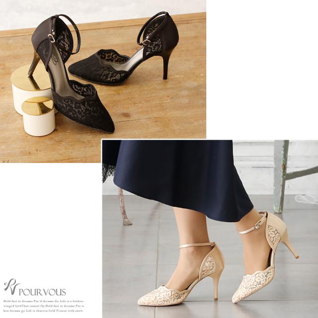 s062 パンプス パーティーシューズ ポインテッドトゥ ミュール レース サイドオープン 靴 レディス レディースファッション パーティードレス ドレス ワンピース 服 服装 上品 大人 ミセス お呼ばれ レディース 20代30代40代 ファッション パーティー 他と被らない 激安 成人