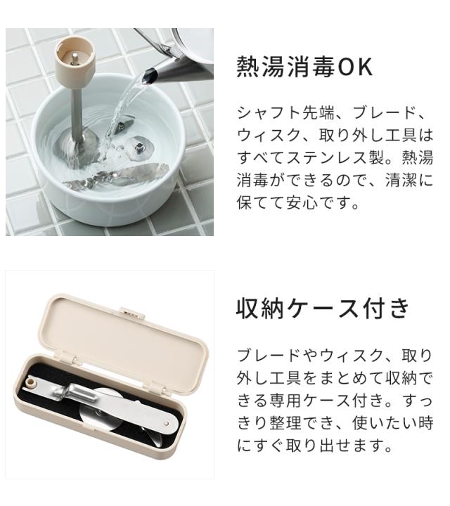 軽くてスリムなボディに、パワフルなかくはん性能を備えた「ビタントニオ ハンドブレンダー VHB-30」。1台で「つぶす」「混ぜる」「泡立てる」「刻む」「おろす」をこなし、多彩な調理をサポートします。改良された4枚刃ブレードにより、かくはん能力がさらにアップ。スムージーやスープもよりなめらかに仕上がります。8段階のスピード調節ができるので、食材や仕上がりに合わせて細やかな調整が可能。赤ちゃんの離乳食づくりにもぴったりです。分解して洗える衛生的な設計と、アタッチメントをまとめて収納できる専用ケース付きで、毎日使いたくなる使い心地です。