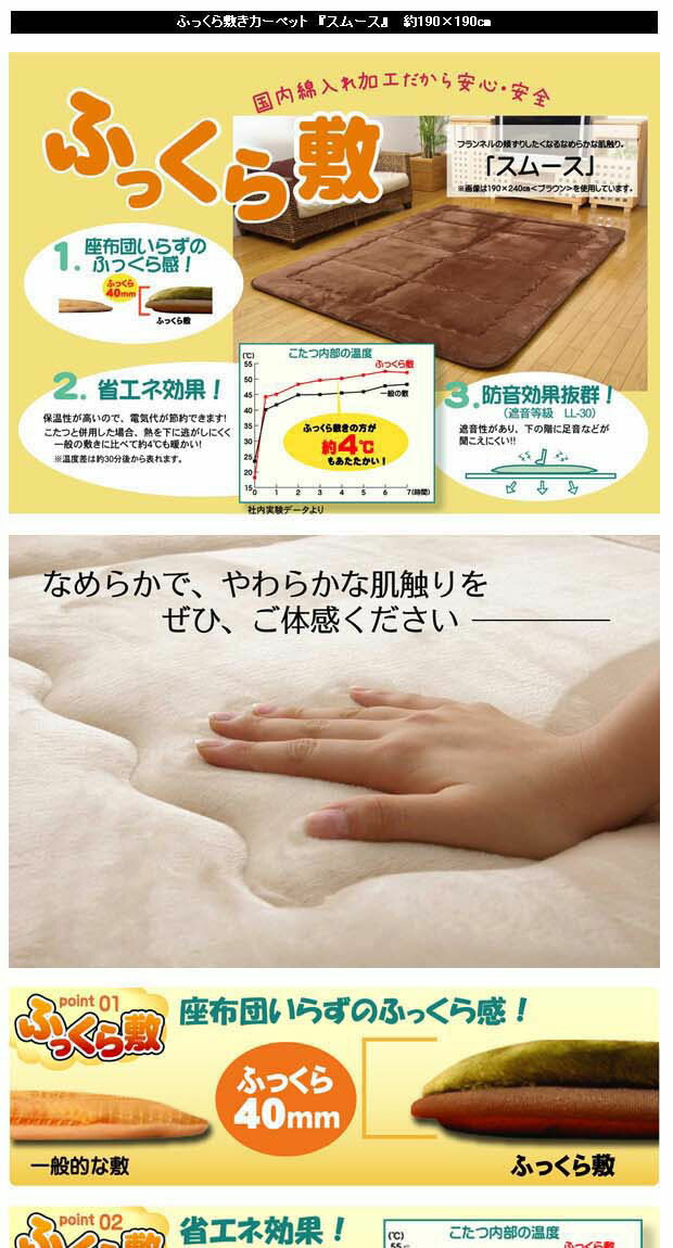 『代引不可』イケヒコ スムース ふっくら敷カーペット 190×190cm ベージュ [ カーペット ラグ シンプル フランネル ] 『返品不可』『送料無料(一部地域除く)』