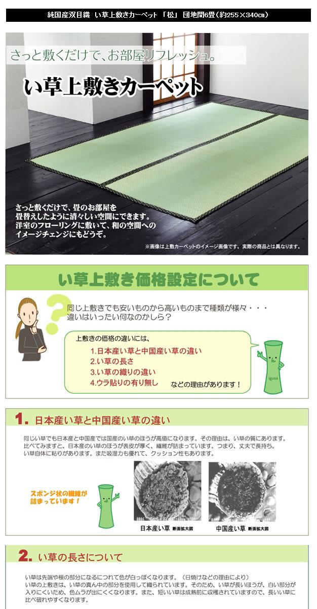 『代引不可』イケヒコ 純国産 双目織 い草上敷 『松』 団地間6畳(約255×340cm) [ ラグ カーペット い草 ]『送料無料(一部地域除く)』
