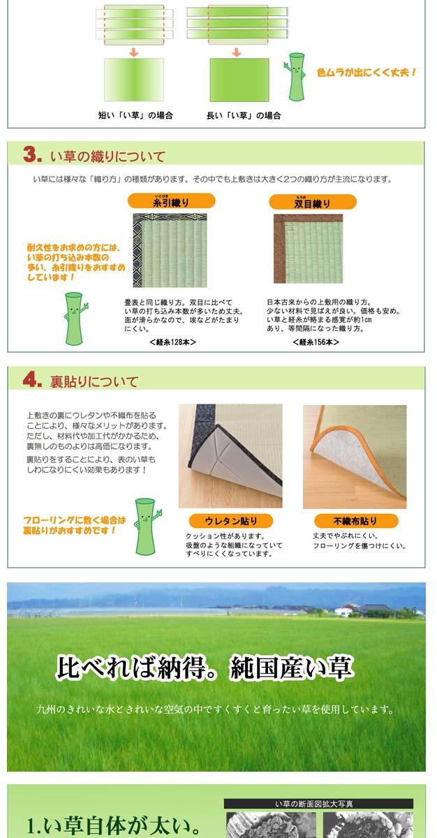 またイ草は使用するうちに日焼けをしますが、真中の青の部分を多く使用したものほど、全体が綺麗にムラなく日焼けし、味が出ます。