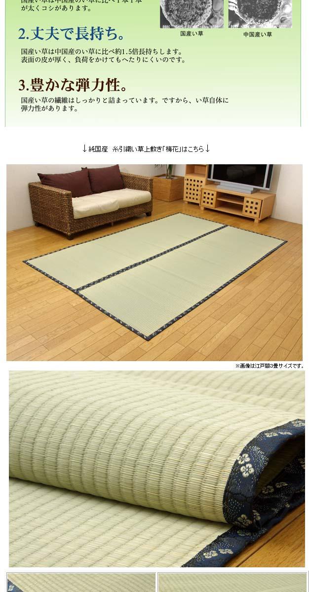 ヘリ際の白い部分が少ない、長いイ草を使用した高級な商品です。