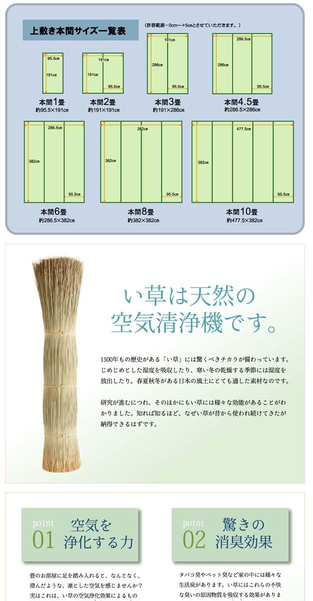 い草には空気の清浄化作用、湿度の調節作用があり、汚れにくいといった特徴があります。
