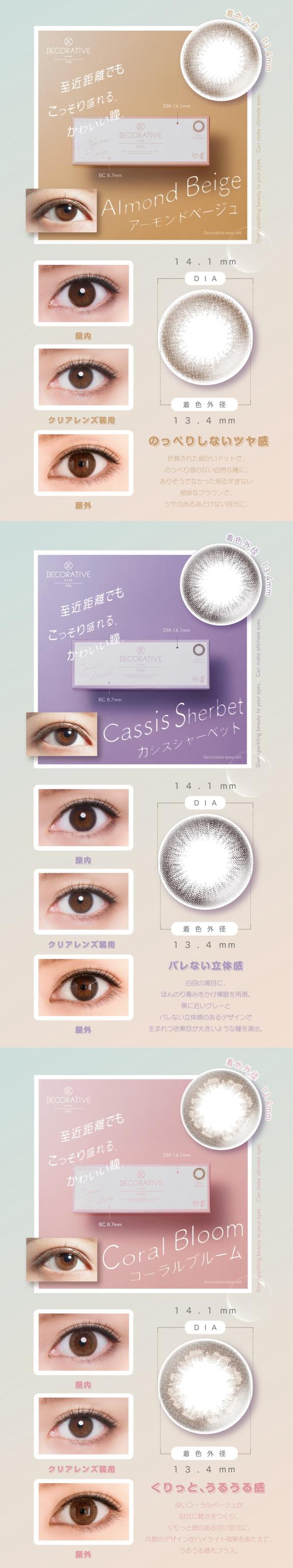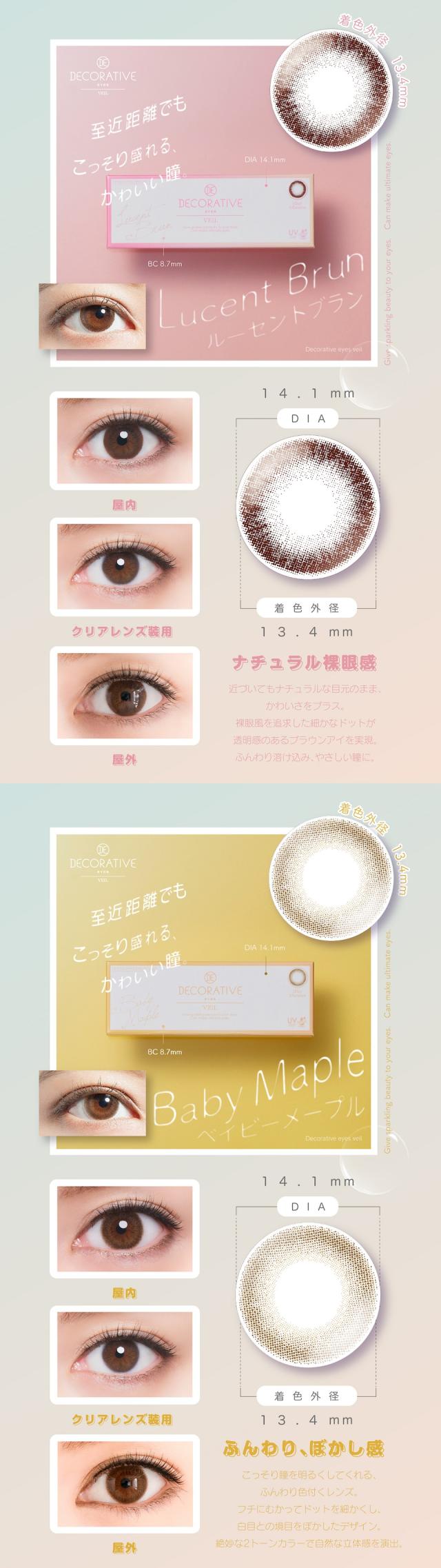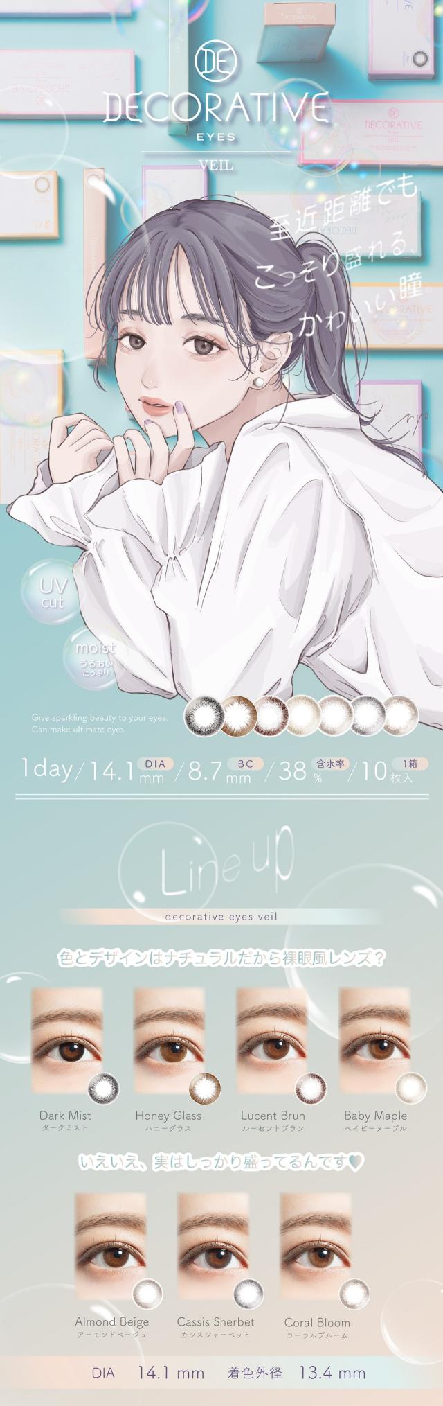 デコラティブアイズ ヴェール カラコン ワンデー 1箱10枚 14.1mm 度なし 度あり カラーコンタクト Decorative Eyes Veil 1day でこらてぃぶ 盛れる 自然 ナチュラル ブラック ブラウン ベージュ ヘーゼル