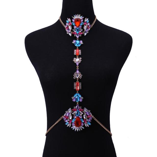 贅沢にビジューを使ったゴージャスなボディチェーン。まるでブラジルのカーニバルの衣装のようなゴージャスなコスプレもできるボディチェーン。水着やヘソだしガーリーに合わせてコーデしたい。