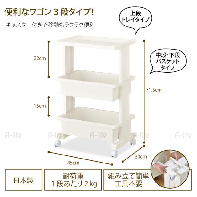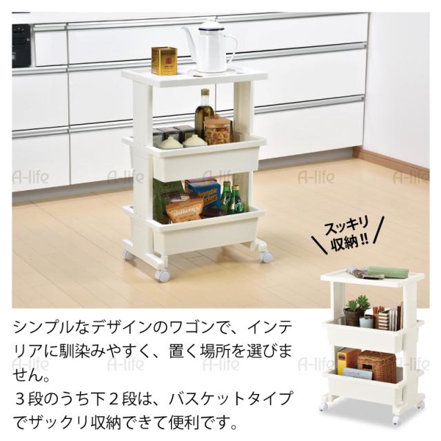 ワゴン 3段 キャスター付き ラック ホワイト キッチンワゴン キャリーワゴン 収納 台 キッチン収納 リビング 洗面所収納 おもちゃワゴン スリムワゴン デスクワゴン サイドテーブル おしゃれ シンプル バスケット a-life エーライフ