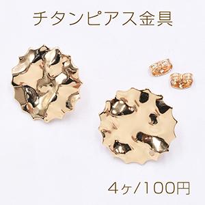 チタンピアス金具 波型レース丸型 1穴 22mm ゴールド【4ヶ】