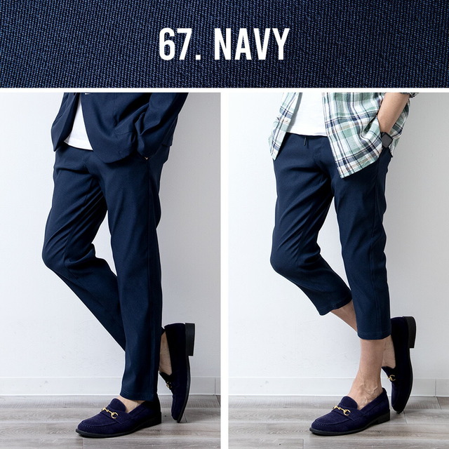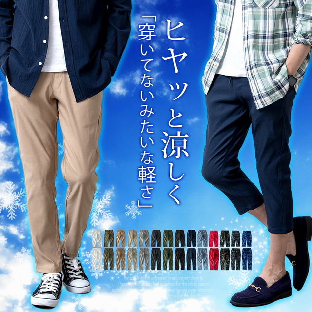 接触冷感 メンズ パンツ 夏 ストレッチ ゆったり 涼しい ボトムス 清涼 涼感 総柄 超伸縮 薄手 スモーキーブルー メンズファッション エアパンツ ネイビー ギフト