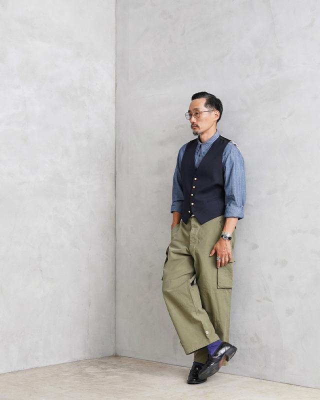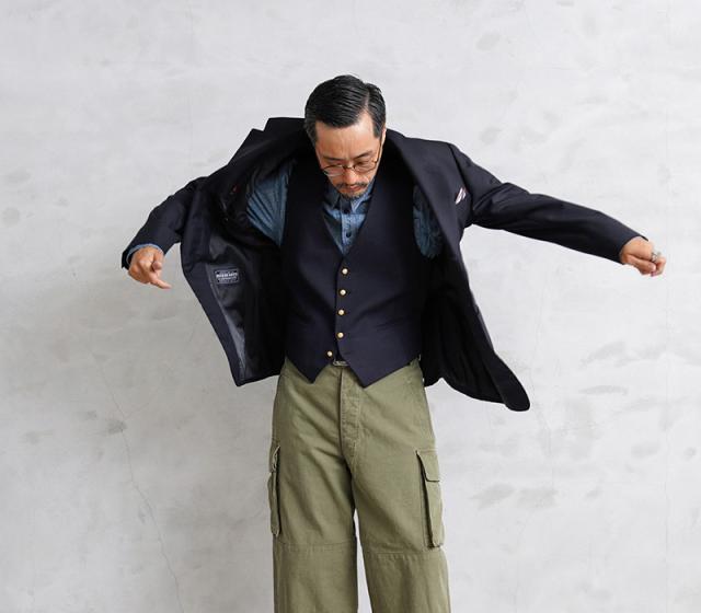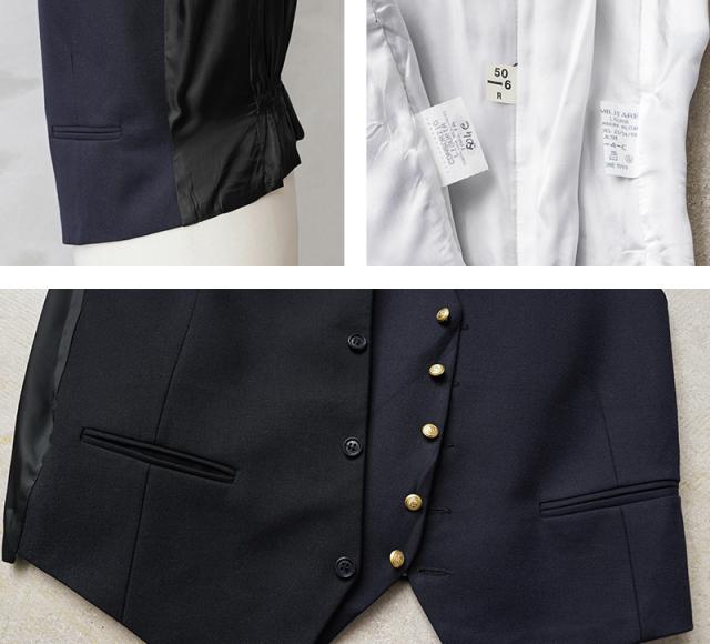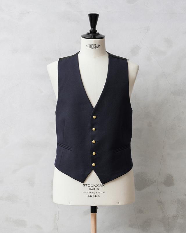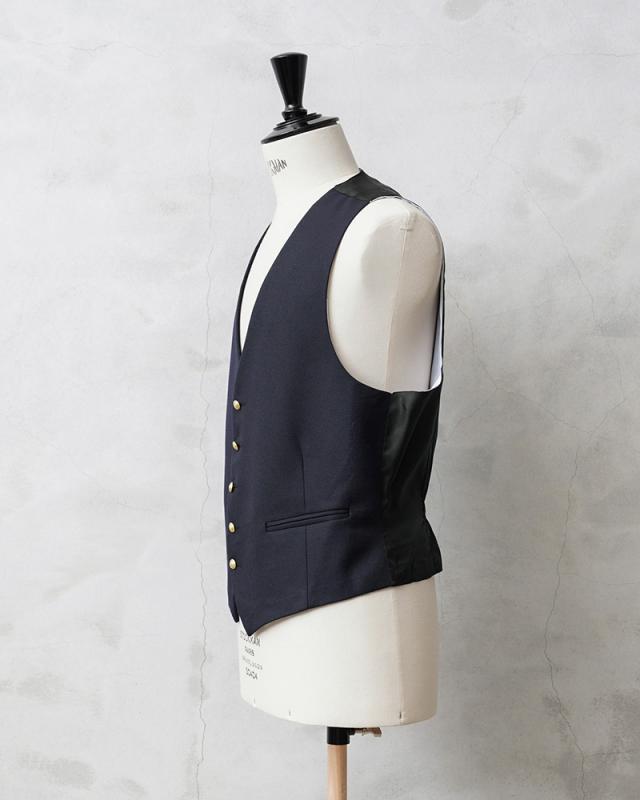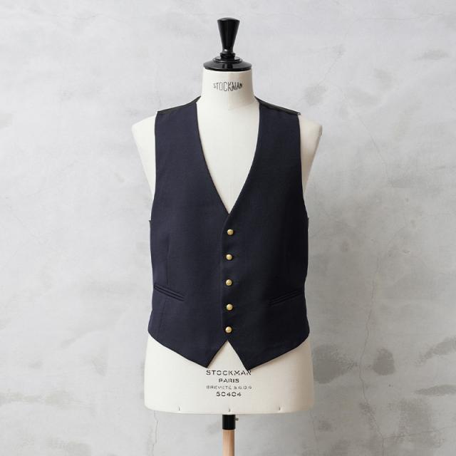 イタリア軍や司法機関放出のジレです。微光沢のある質感の肉厚ウール素材を使用、背面やライニングには滑らかで肌触りの良いポリエステル生地を使用しています。野暮ったさのないスタイリッシュなシルエットはイタリア放出品ならでは。フォーマルなイメージのアイテムですがカジュアルスタイルのプラスワンにもオススメです。ジレがあれば寒暖差のある季節でも簡単に体温調節ができますし、柔らかな仕立てでシンプルでクラシカルなデザインは着るだけで上品な印象がプラスされます。