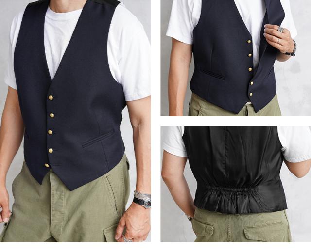 実物 新品 デッドストック イタリア ジレ ベスト 2ポケット【Cx】【I】|キレイめ カジュアル フォーマル メンズ 紺 ネイビー おしゃれ メンズ トップス ショート丈 薄手