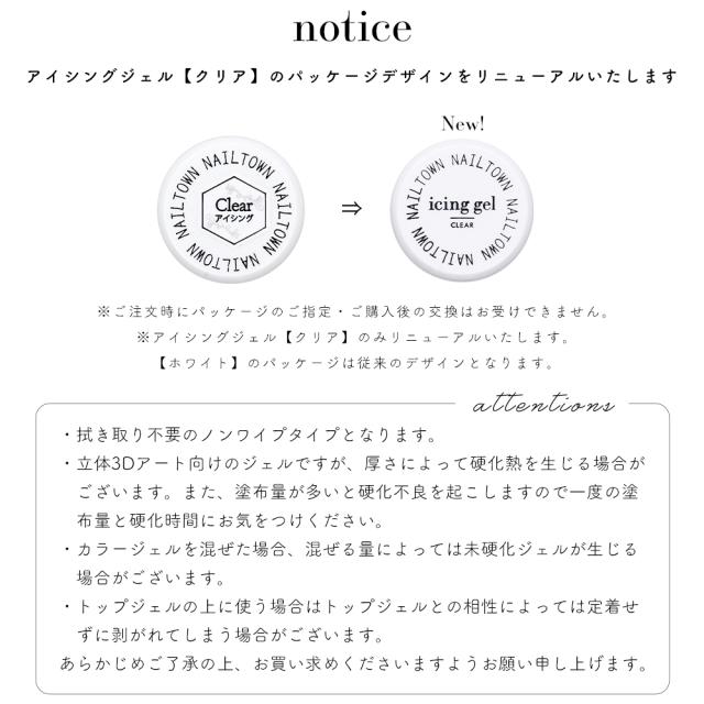 ネイルタウンジェル アイシングジェル (クリア/ホワイト) 3g入り