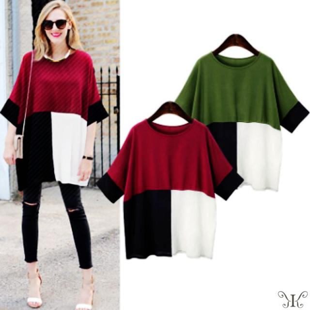 LAZA 大きいサイズ オルチャン 新作 オトナ 配色 ゆったり ドルマン トップス F