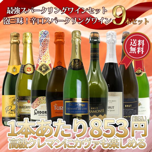 最強スパークリングワインセット 泡三昧!辛口スパークリングワイン9本セット 送料無料 家飲み