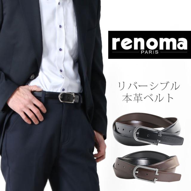 renoma 牛革 リバーシブル ベルト ブラック ブラウン メンズ ピンタイプ デザイン バックル(No.09000119)