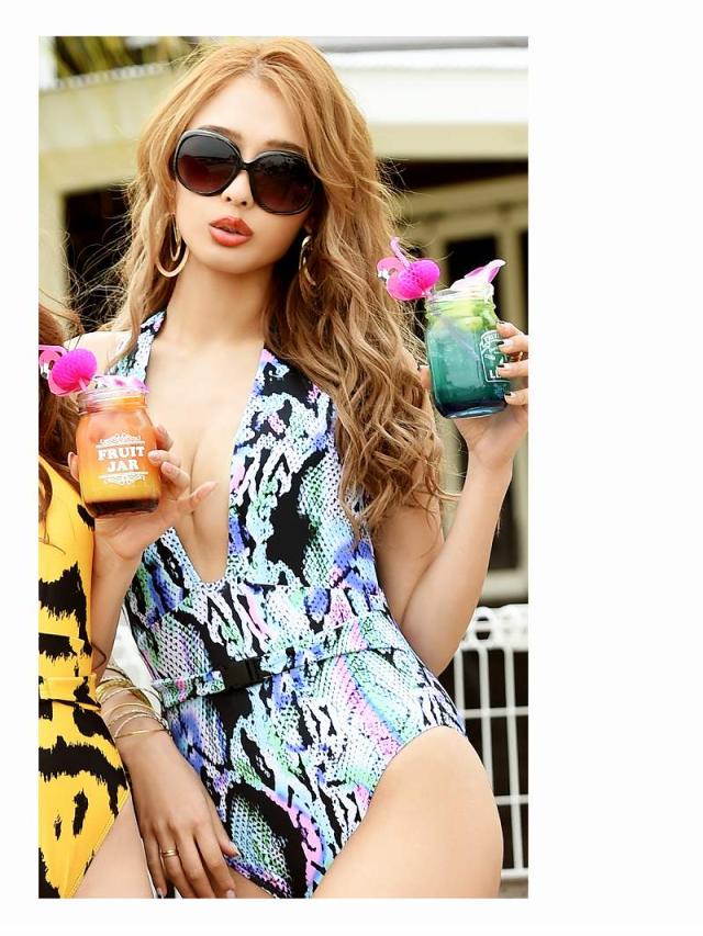☆カッコよくセクシーにキマル谷間魅せ パイソン柄sexyモノキニ水着はビーチでも注目の的♪