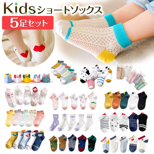 子供靴下 ショートソックス 5足セット アンクルソックス ハート 可愛い パンダ スポーツ お花 スニーカーソックス キッズ ベビー