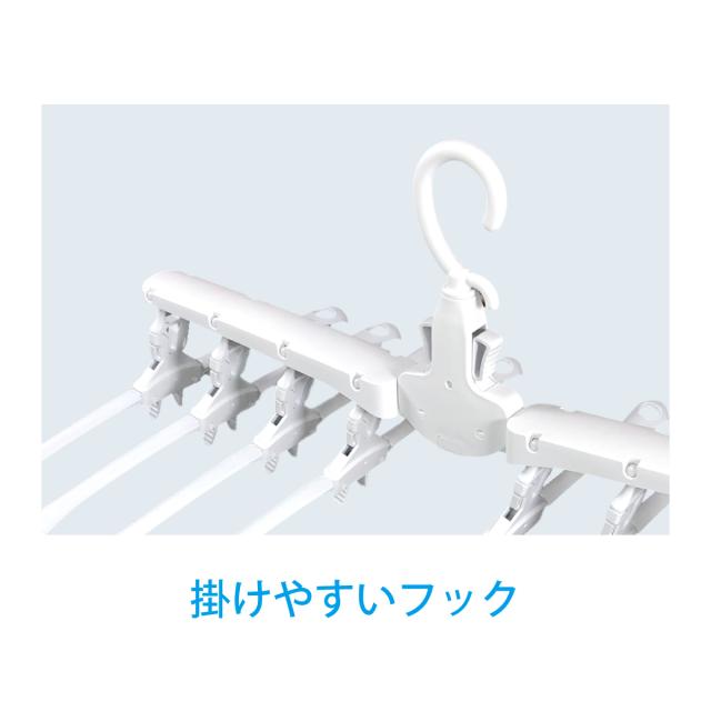 - フック部分が、物干し竿に合わなくてギリギリ入りました。室内物干し竿には余裕ありです