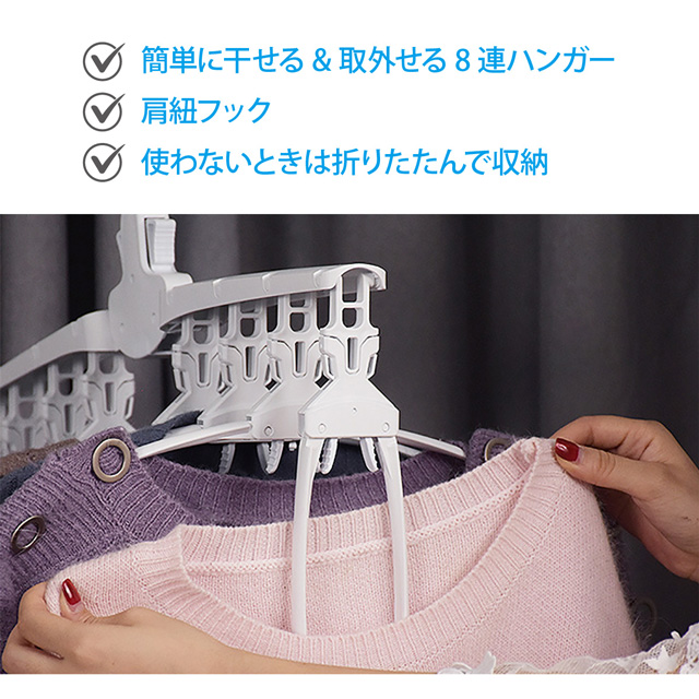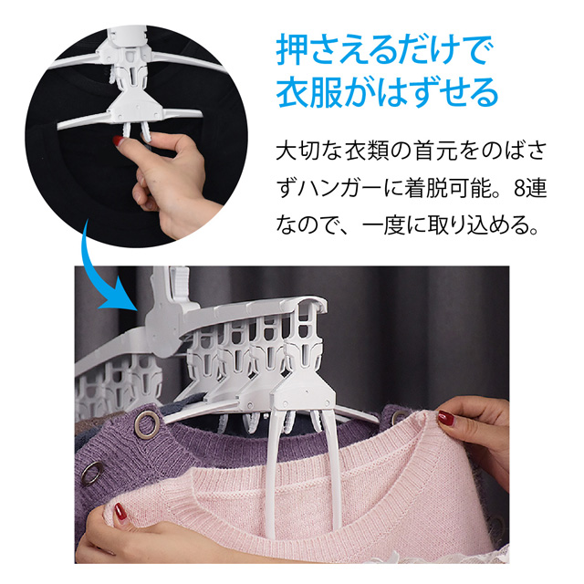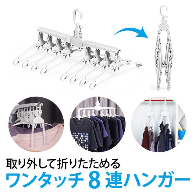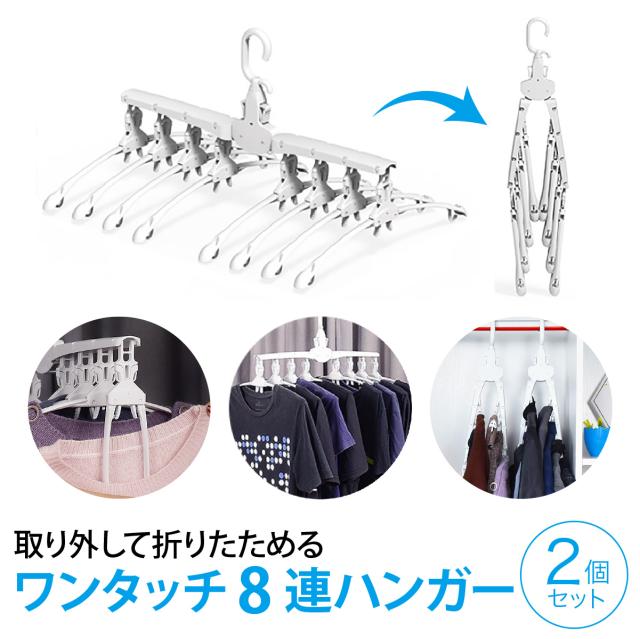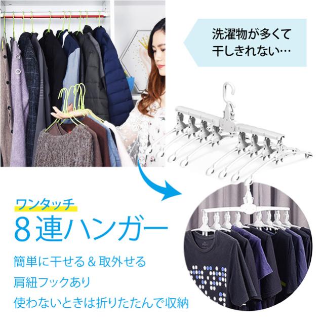ワンタッチハンガー 8連 ハンガー 2本セット ワンタッチ 便利グッズ 便利 物干しハンガー 8連ハンガー ハンガーラック 洗濯 スリム 収納 ワイシャツ Tシャツ hanger-8ren-2set