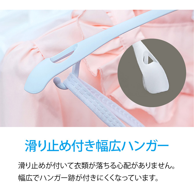 - いつもこのタイプのハンガーを使っています Tシャツの襟ぐりが伸びずに簡単に素早く干せるので助かっています